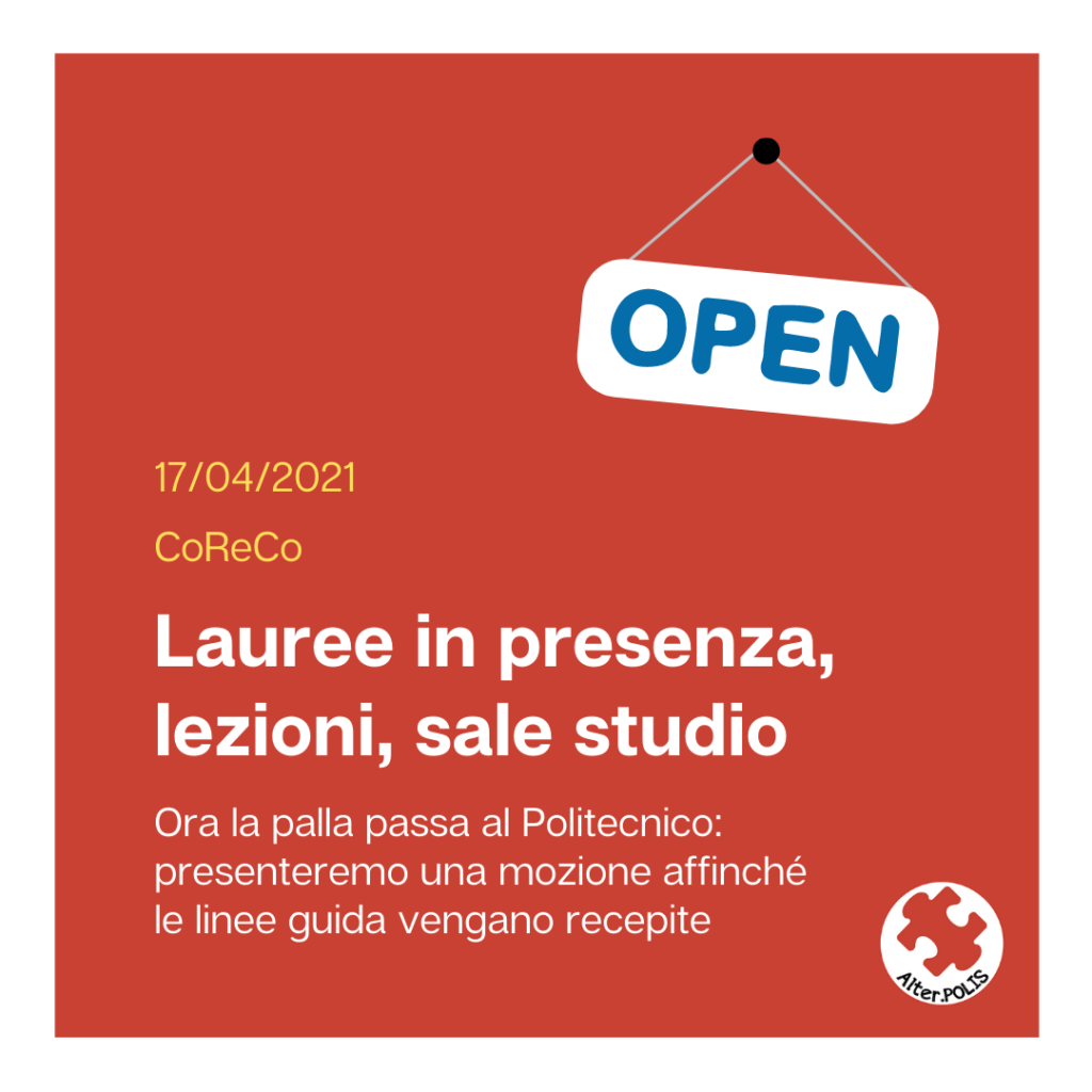 📝 Ora la palla sta al Politecnico: presenteremo nella prossima seduta d’organi una mozione affinché queste linee vengano effettivamente recepite in modo fattivo, compresa quella sulle lauree.