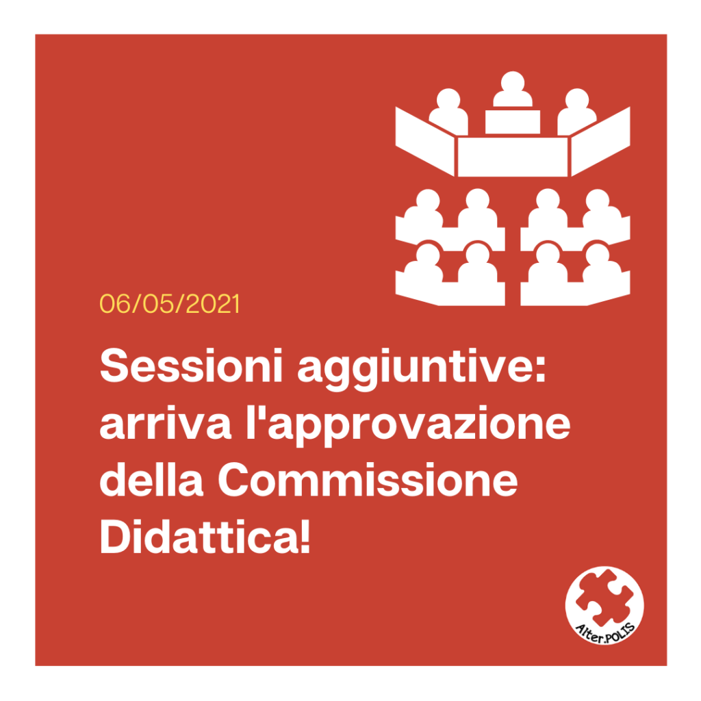 ✅ Nella seduta odierna della Commissione Didattica, è stata approvata l’aggiunta delle 2 sessioni aggiuntive per chi ha concluso le frequenze: a questo punto manca solo l’approvazione del Senato Accademico!